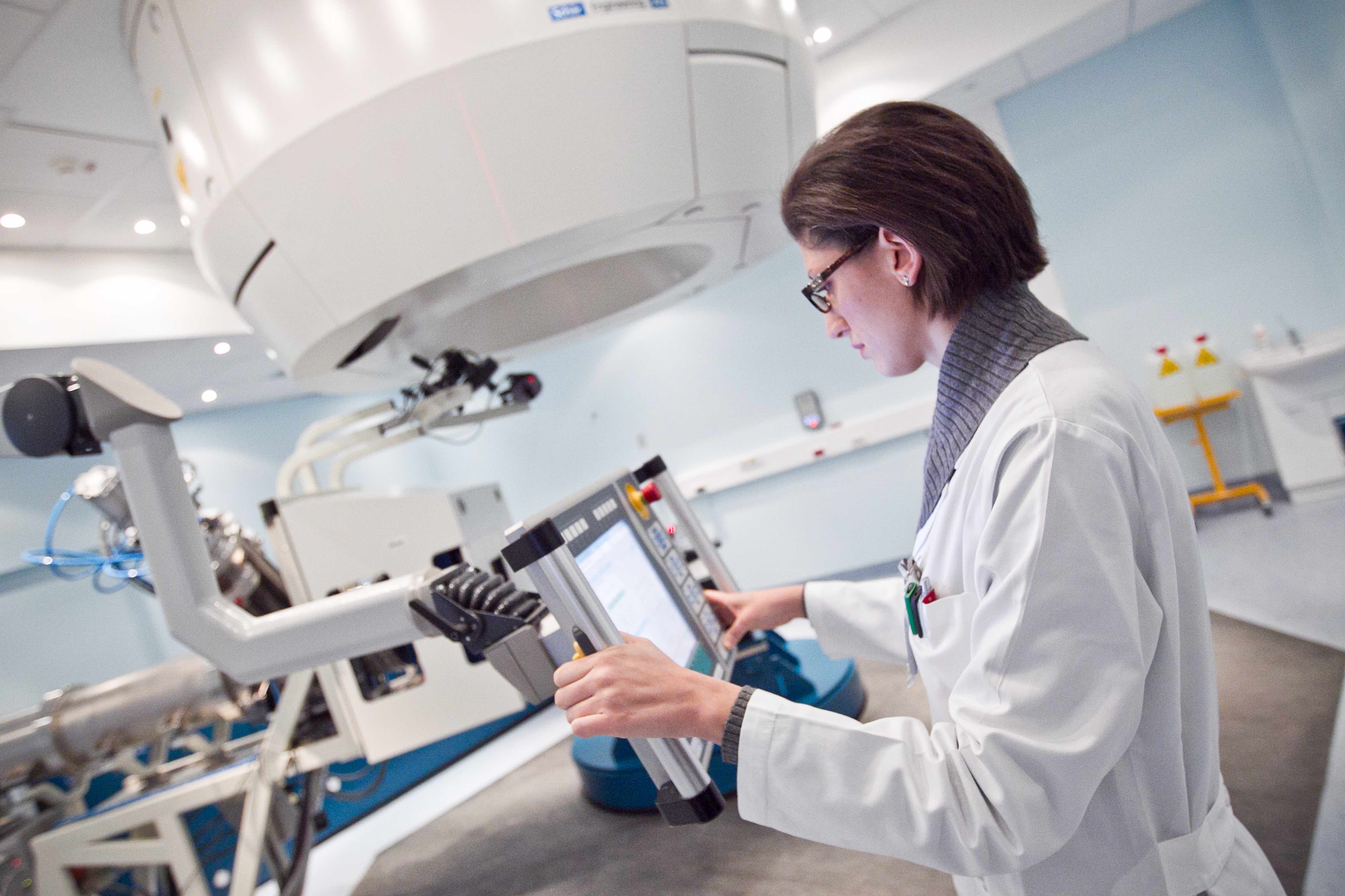 La seduta di trattamento dura in media 20-25 minuti. Questo tempo include le verifiche pre-trattamento, vale a dire la verifica radiologica (bidimensionale o volumetrica) che certifica che la posizione del paziente sia conforme a quella del giorno della simulazione TC. A questa segue l’erogazione del fascio di trattamento di durata variabile a seconda del numero di campi previsti (in genere due o tre), del tipo di bersaglio (statico o in movimento) e del volume del target.