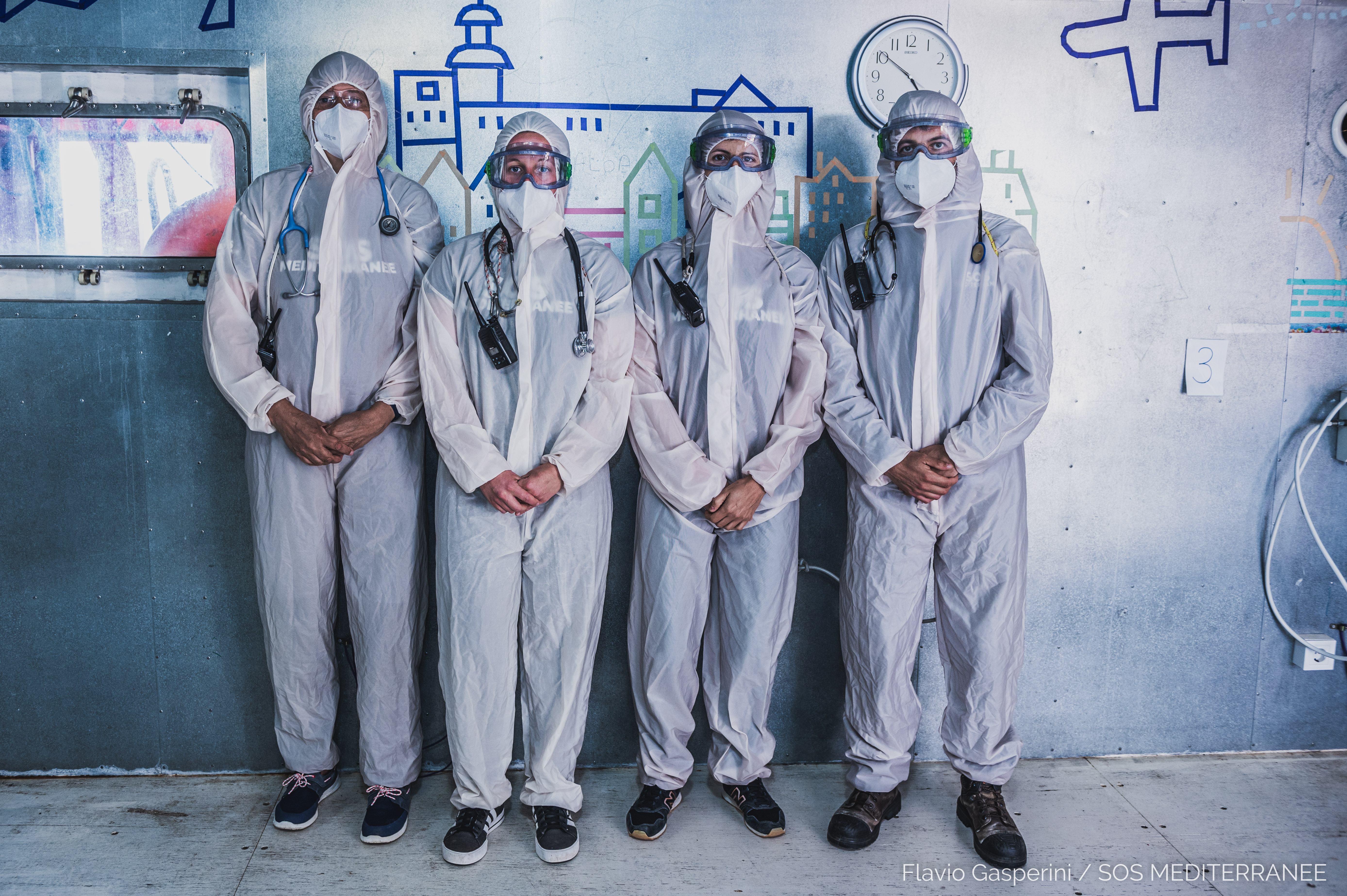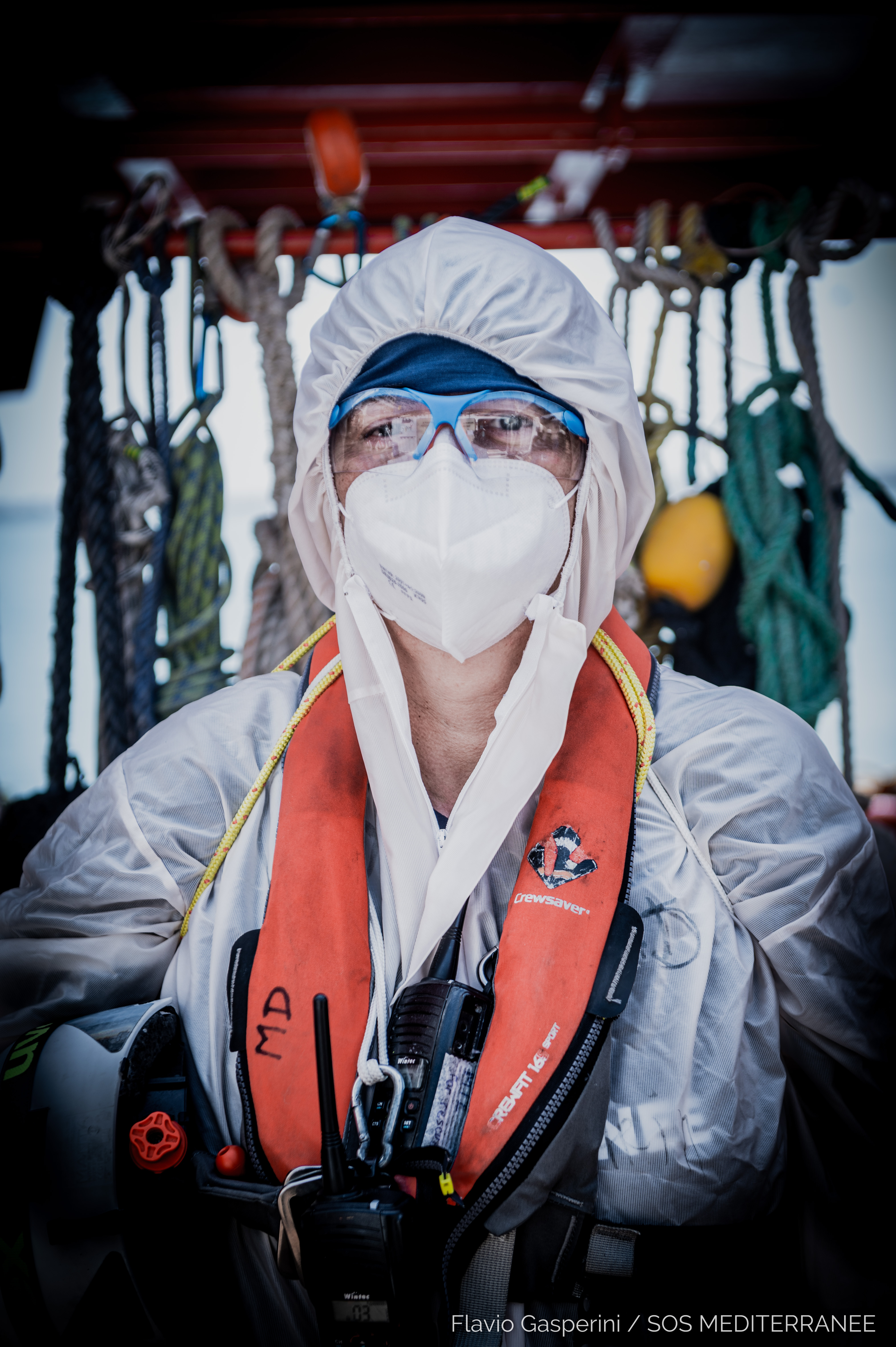 Questa pandemia sta cambiando notevolmente il nostro modo di lavorare, e non solo a livello medico. Tutto l'equipaggio indossa sempre le protezioni, anche durante i salvataggi. È un peso perché tutti i nostri movimenti sulla barca e le nostre interazioni con i sopravvissuti sono stravolte.