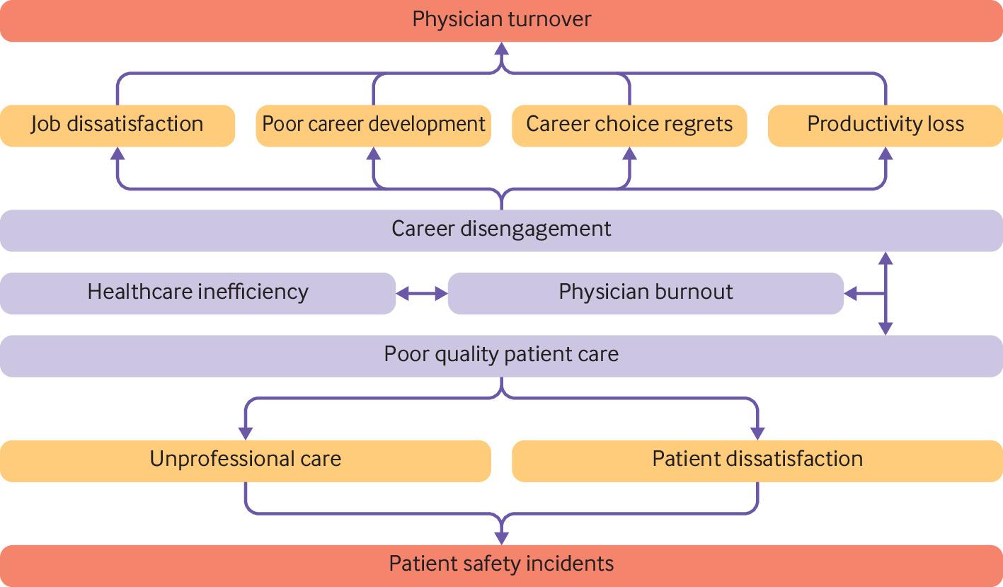 1 - Hodkinson A, Zhou A, Johnson J, Geraghty K, Riley R, Zhou A, Panagopoulou E, Chew-Graham CA, Peters D, Esmail A, Panagioti M. Associations of physician burnout with career engagement and quality of patient care: systematic review and meta-analysis. BMJ. 2022 Sep 14;378:e070442. doi: 10.1136/bmj-2022-070442. PMID: 36104064; PMCID: PMC9472104.