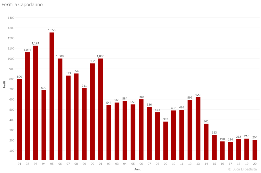 Quella che vi lasciamo qui di seguito è la lista degli infortuni avvenuti negli ultimi anni (dati della Polizia di Stato), sperando che non si allunghi ulteriormente il prossimo primo gennaio.