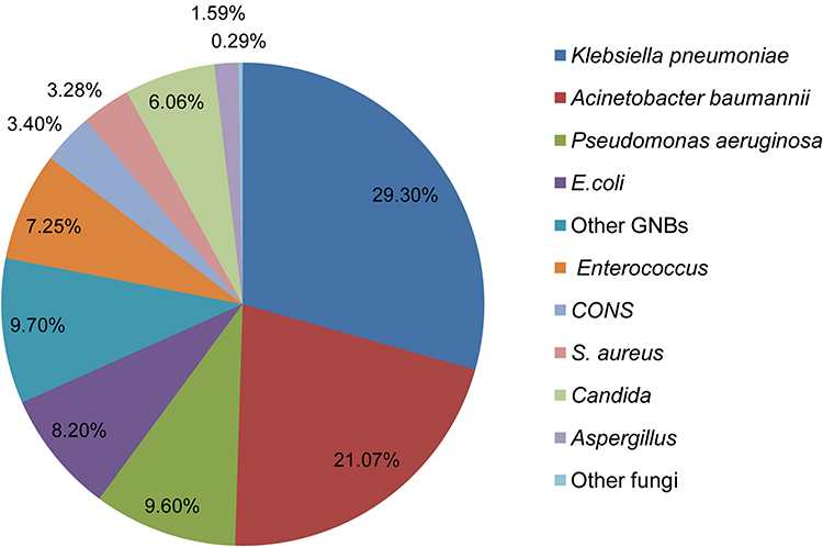 Sul totale dei decessi dovuti alle SI, il 72% era attribuibile a patogeni Gram-negativi e l'11% a patogeni Gram-positivi. I patogeni Gram-negativi multiresistenti (K. pneumoniae e A. baumannii su tutti) erano i patogeni predominanti delle SI, e il tasso di resistenza ai carbapenemici di questi due patogeni era molto alto (72% e 92%, rispettivamente). La mortalità tra i pazienti con infezioni da K. pneumoniae e A. baumannii era rispettivamente del 76% e del 63%.