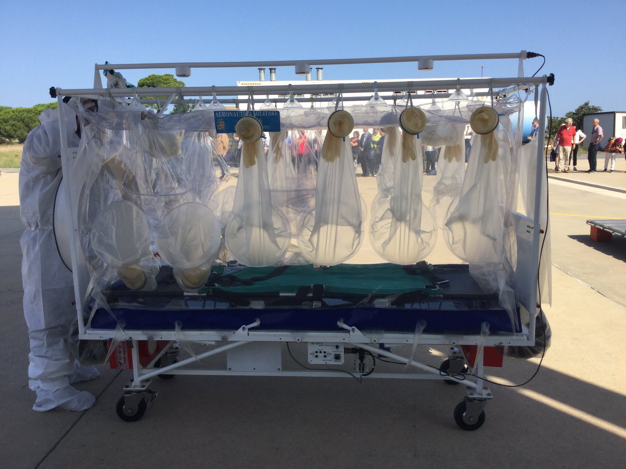 In queste missioni si usano le ATI (Air Transit Isolators). Una ATI è una struttura di isolamento autonomo progettata per trasportare in sicurezza un paziente durante il trasporto aereo, proteggendo il personale sanitario, l'equipaggio aereo e l'aereo dall'esposizione agli agenti infettivi. L'ATI fornisce un ambiente microbiologicamente sicuro utilizzando una protezione multistrato: attorno al telaio rigido o semirigido, un involucro in PVC circonda il paziente permettendo l'osservazione e il trattamento, mentre un'unità di alimentazione dell'aria mette l'unità ATI sotto pressione negativa, con filtri HEPA (High Efficiency Particulate Air filters) in ingresso e in uscita che filtrano il 99,97% delle particelle di 0,3 mm e più grandi impedendo il passaggio di micro-particelle potenzialmente infette. Quattro batterie da 12V con un tempo di funzionamento di 6 ore ciascuna forniscono all'ATI un’autonomia energetica di 24 ore.