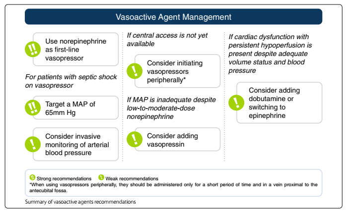 La European Society of Intensive Care Medicine e la Society of Critical Care Medicine hanno pubblicato delle tabelle riassuntive: SSC concise reccomendation tables