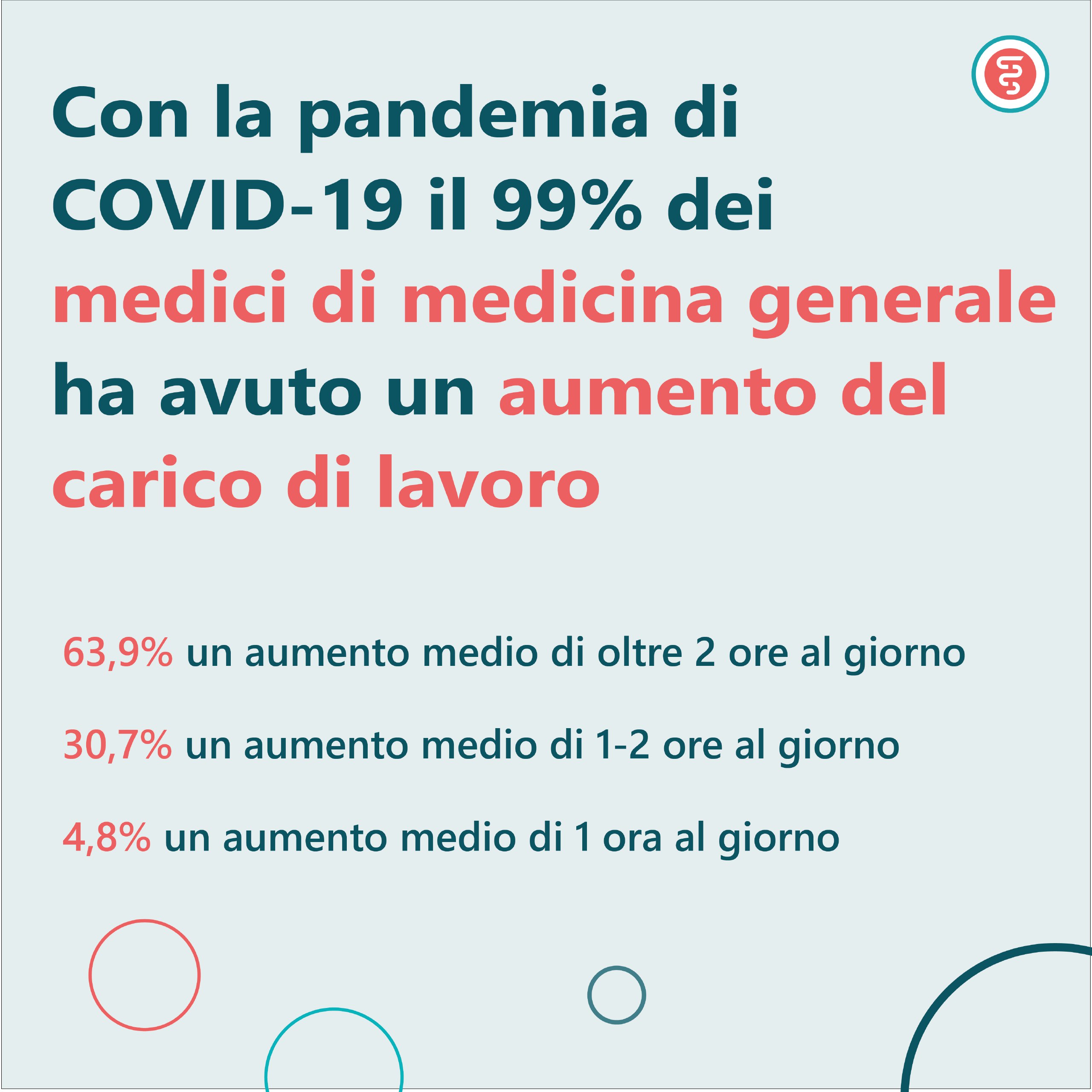 La quasi totalità dei partecipanti (99,4%) dichiara di aver visto un incremento del proprio carico di lavoro. Il 63,9% dice di aver avuto un aumento medio giornaliero di 2 ore di lavoro.