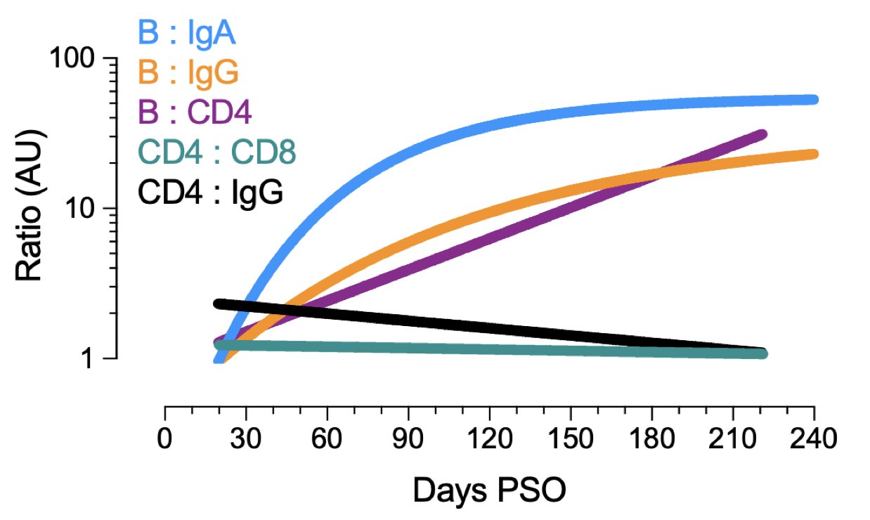 Nello specifico, i ricercatori hanno misurato simultaneamente i livelli di anticorpi circolanti, di cellule B della memoria, di cellule T CD8+ e di cellule T CD4+ specifiche per SARS-CoV-2, in un gruppo di 185 soggetti che hanno presentato diversi gradi di malattia COVID-19. Li hanno studiati in un range temporale che va da pochi giorni dopo l’insorgenza dei sintomi fino a 8 mesi. Studiando i vari elementi dell’immunità adattiva in modo integrato, i ricercatori hanno osservato che ogni componente della memoria immunitaria SARS-CoV-2 mostrava una cinetica distinta.